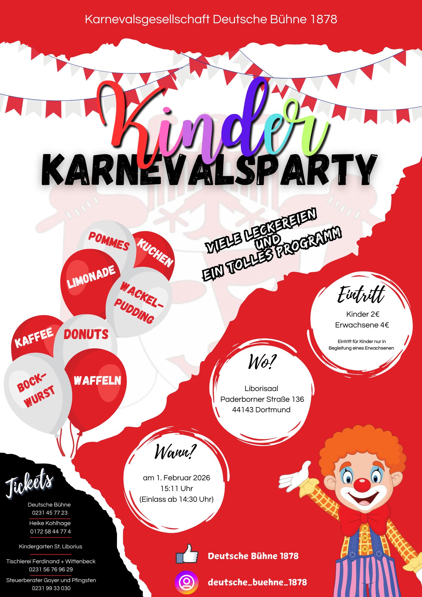Wann: Sonntag, 01.02.2026 15:11 Was: Kinderkarneval der Deutschen Bühne Wo: Liborisaal