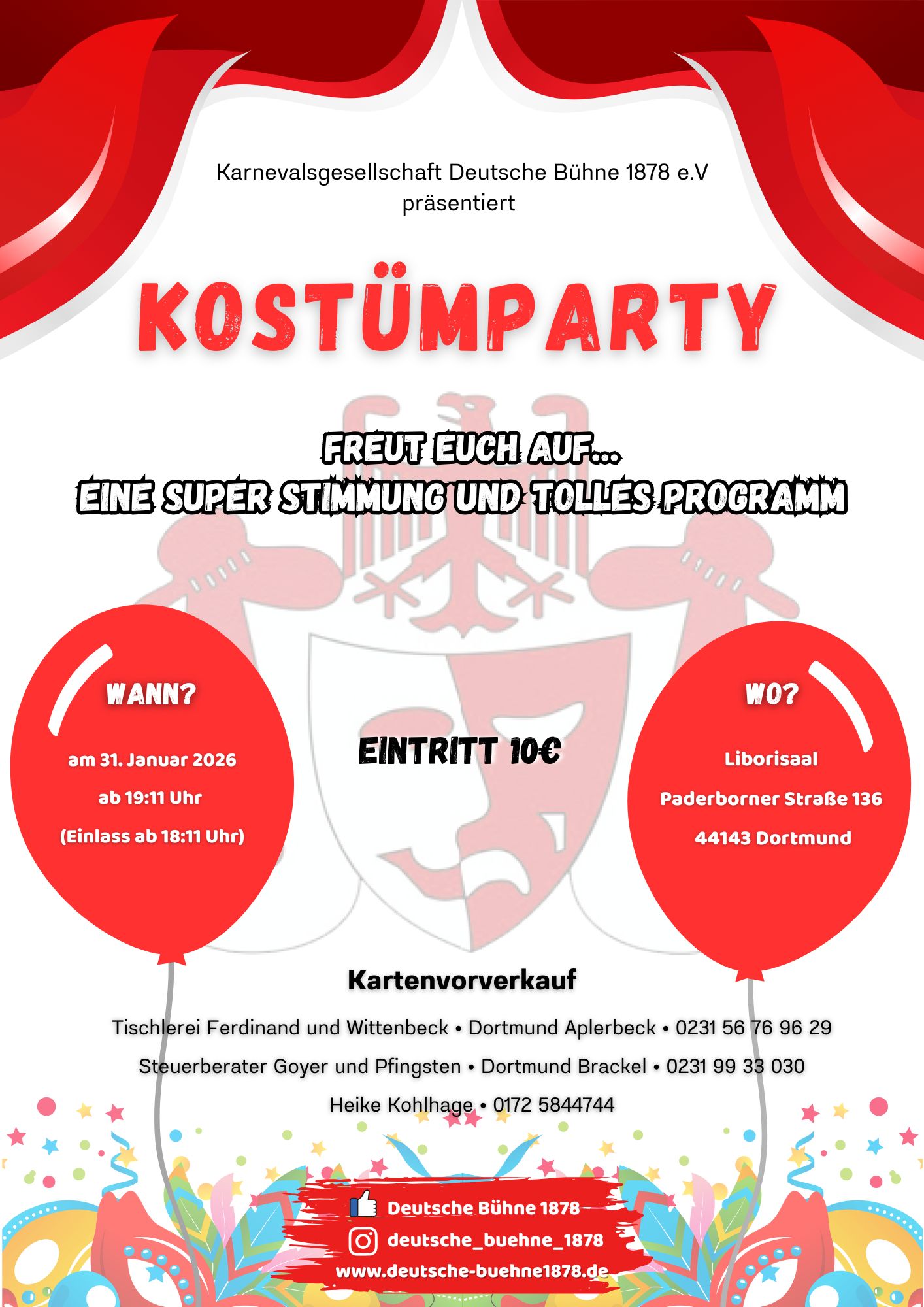 Wann: Samstag, 31.01.2026 19:11 Was: Kostümparty der Deutschen Bühne